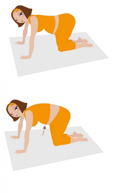 Exercice numéro 3 : Le travail du transverse Consignes : à quatre pattes, faites le dos rond en inspirant profondément, puis relâchez en expirant. Effectuez 6 séries de 10 répétitions.