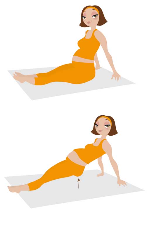 Consignes : en s’appuyant sur les mains, décollez le bassin en inspirant. Maintenez la position 6 à 8 secondes en expirant.
