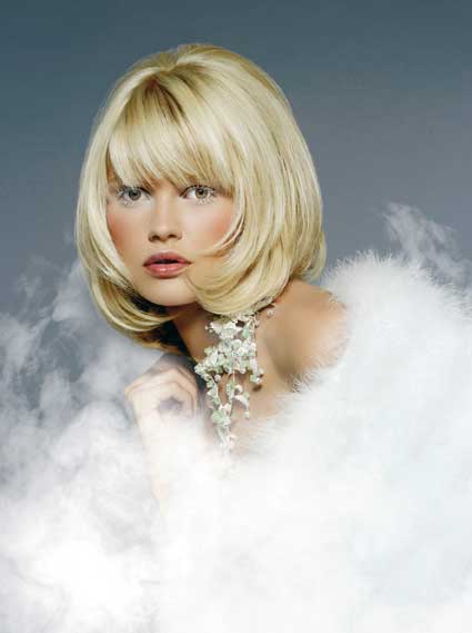 Carré court et sophistiqué. La base de la coupe est légèrement raccourcie puis dégradée sur tout le pourtour et le devant du visage. Un léger mouvement est donné à la frange épaisse pour obtenir cet effet chic.
