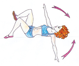 Allongez-vous sur le dos. Fléchissez la jambe gauche et placez la cheville droite contre le genou gauche. Dirigez le regard vers le plafond et placez les bras en croix à 3 cm du sol. Tout en rasant le sol, amenez les mains derrière la tête, paumes dirigées vers le haut. Soufflez à l’aller et inspirez au retour. 20 mouvements suffiront.