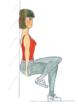 Placez-vous dos à un mur de telle sorte que le pied droit soit en appui au sol, le mollet droit placé verticalement et la cuisse droite horizontalement. Posez le genou gauche sur le bas de la cuisse droite.