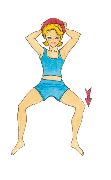Debout, les jambes écartées d’environ la largeur des épaules, les pieds légèrement tournés vers l’extérieur. Prenez votre ballon et placez-le derrière votre cou en le maintenant avec les deux mains. Descendez lentement pour atteindre la position assise. Votre dos doit rester droit et légèrement penché vers l’avant. Ensuite, remontez à la même vitesse afin de vous retrouver debout. Expirez lors de la descente et inspirez sur la remontée. Faites 3 séries de 20 répétitions avec 30 secondes de récupération entre les séries.