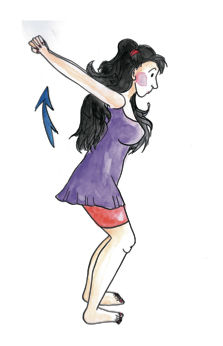 Debout à nouveau, les jambes écartées et légèrement fléchies, la tête droite. Les doigts se nouent derrière le dos, et les bras se tendent au maximum, tandis que votre torse se penche doucement vers l’avant. Faites attention a ne pas tendre les jambes lorsque vous vous penchez. Faites cet exercice 3 fois.