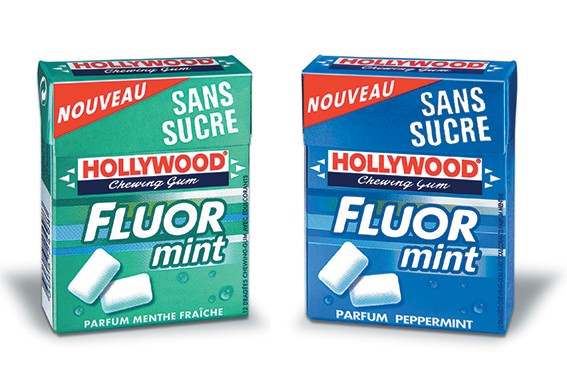Hollywood chewing-gum Fluor mint, 2,7 € le lot de 3 étuis en grandes et moyennes surfaces. 1,5 € l’unité en kiosques.