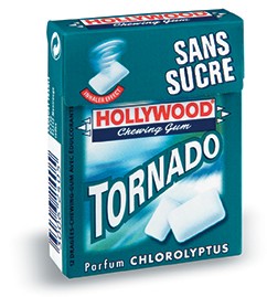 Hollywood Chewing-Gum Tornado, 2,7 € le lot de 5 étuis. En grandes et moyennes surfaces. 1 € l’unité en boulangeries, kiosques et tabacs.