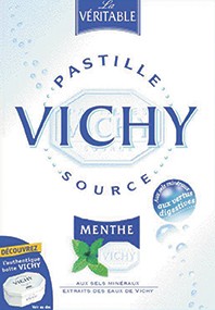VICHY Ces traditionnelles pastilles de Vichy à la menthe, à l’anis, au citron et aux sels minéraux extraits des eaux de Vichy donnent bonne haleine et ont des vertus digestives. Pastille Vichy, 1,25 € le sachet. En grandes et moyennes surfaces.