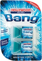 BANG ! Ces nouvelles feuilles à la menthe forte à laisser fondre sous le palais vous entraîneront au cœur d’un univers de fraîcheur intense. Hollywood Feuilles Bang, 2,5 € le bi-pack. En grandes et moyennes surfaces.