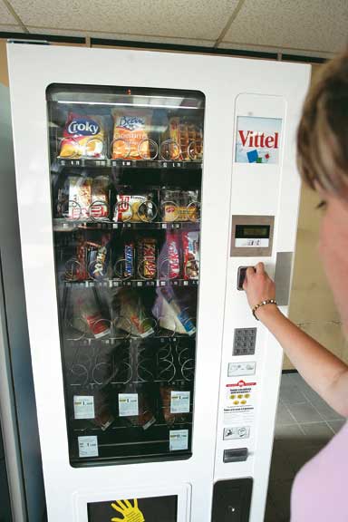 On a surtout l'image des distributeurs de bonbons, chocolats, chips et autres gourmandises alléchantes... qu'on trouve dans les distributeurs présents dans les gares ou les salles de sport.