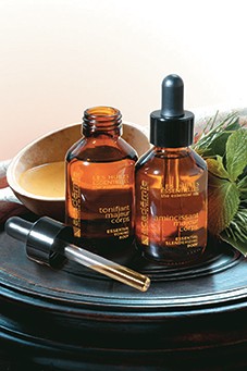 Huiles essentielles tonifiant majeur corps, Académie scientifique de beauté, 41 � le flacon compte-gouttes de 100 ml. Tél. points de vente : 01 42 42 01 76.