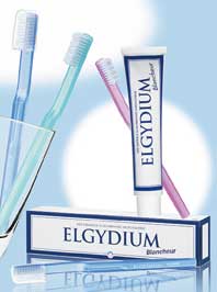 - le Dentifrice Elgydium Blancheur qui gomme en douceur les surfaces lisses de l’émail et nettoie en profondeur les fissures et irrégularités de l’émail, pour un meilleur blanchiment de la dentition.