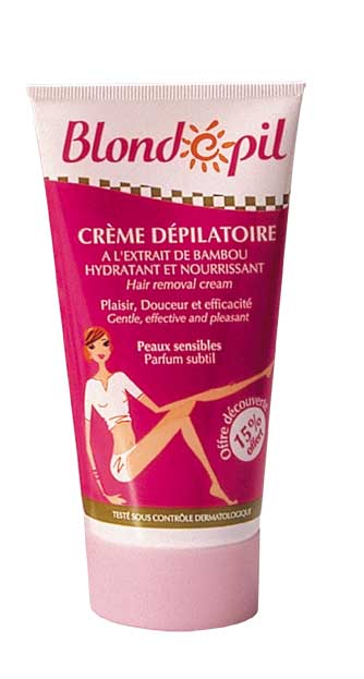 Pour les adolescentes Ses extraits de bambou diminuent la densité du poil et son parfum sucré séduira toutes les lolitas qui rêvent d’avoir des jambes nettes, douces et parfaites. En grandes surfaces. Crème dépilatoire, Blondépil, 3,20 €.