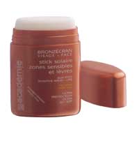 Stick solaire zones sensibles et lèvres Bronzécran d’Académie, 16 €. Tél. points de vente : 01 42 42 01 76.