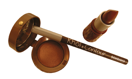 P’tit maquillage brun : Rouge à lèvres « Brun préféré », 9,90 € Ombre à paupières « Brun créatif », Crayon contour des yeux « Brun expressif », BOURJOIS