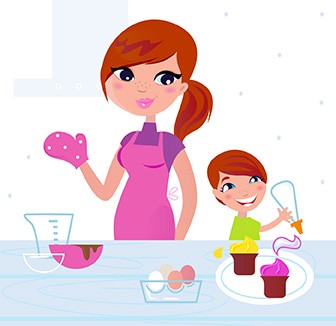 En fonction de la difficulté de la recette que votre enfant a choisie et de son âge, allez-y progressivement : soit vous le rendez spectateur de la recette que vous préparez vous-même en lui commentant tout haut l’ensemble des étapes, soit vous l’impliquez dans certaines étapes, soit vous l’impliquez totalement, en restant à côté de lui pour lui expliquer et l’aider. Évitez, bien sûr, les préparations dangereuses qui nécessitent l’utilisation de gros couteaux, d’appareils électriques tranchants,...