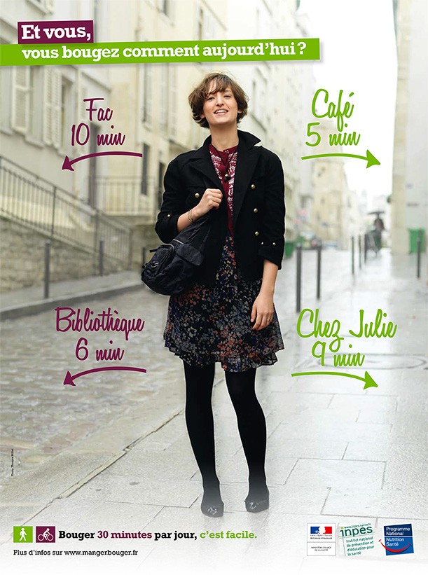 L'Inpes poursuit son programme de promotion de l'activité physique au quotidien. En indiquant, par une signalétique urbaine à destination des piétons, des distances en temps - « centre ville, 15 minutes » - cette opération veut amener les citadins à reconsidérer et intégrer la marche et le vélo dans leurs pratiques quotidiennes. Il s’agit, par un dispositif simple et accessible, de démontrer au plus grand nombre que l’activité physique est à portée de tous. Chacun peut, en effet, effectuer trois trajets de 10 minutes à pied dans sa journée, à condition de savoir combien de temps il est nécessaire pour parcourir une distance !