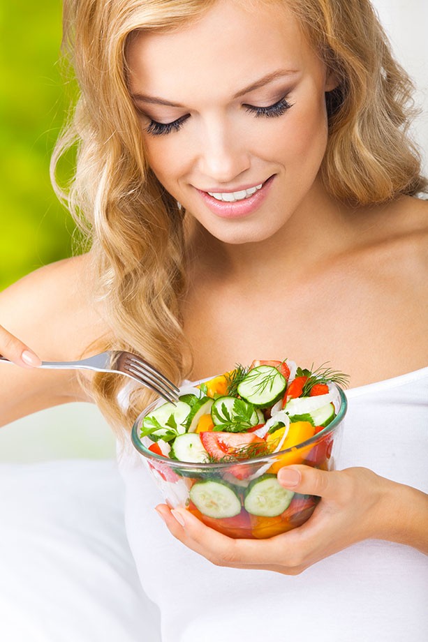 Les salades vertes et les salades composées peuvent être consommées mais les quantités des aliments qui apportent de la matière grasse (viande-poisson-œuf, produit laitier, sauce) doivent être diminuées ou remplacés par des équivalents moins gras (ex. : du chèvre frais à la place du chèvre sec ; une sauce au yaourt à la place d’une sauce vinaigrette ; du jambon blanc à la place du saucisson...).