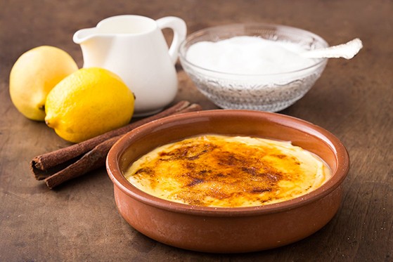 Dans une casserole, versez le lait avec le sucre, les jaunes d’œufs, le bâton de cannelle et les zestes du citron et de l’orange. Mélangez avec une cuillère en bois jusqu’à ébullition. Retirez la casserole du feu. Retirez la branche de cannelle. Ajoutez petit à petit la maïzena tout en battant énergiquement. Laissez épaissir puis verser la crème dans les terrines. Laissez refroidir. Une fois froide, couvrir la surface de la crème avec du sucre blanc cristallisé puis faîtes bruler avec un chalumeau de cuisine ou, à défaut, sous le grill du four.