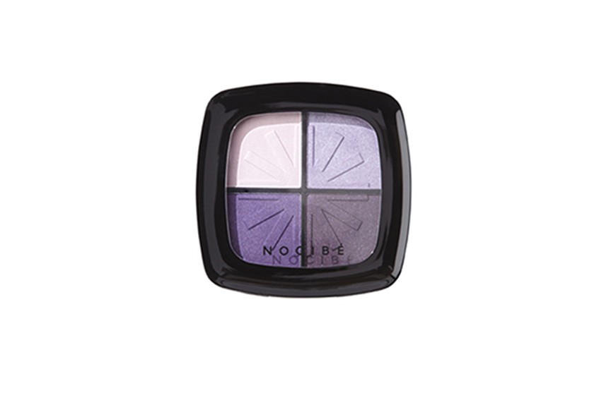 Quatuor ombre éclat lumière de Nocibé. Fard à paupières poudre, idéal pour travailler vos smockey look. Dans cette gamme, Nocibé propose une palette de 4 couleurs dans les mauves qui vous permettent de travailler de multiples harmonies. Pour une meilleure tenue, il est conseillé d’appliquer la base paupière Voile de Velours avant votre fard.