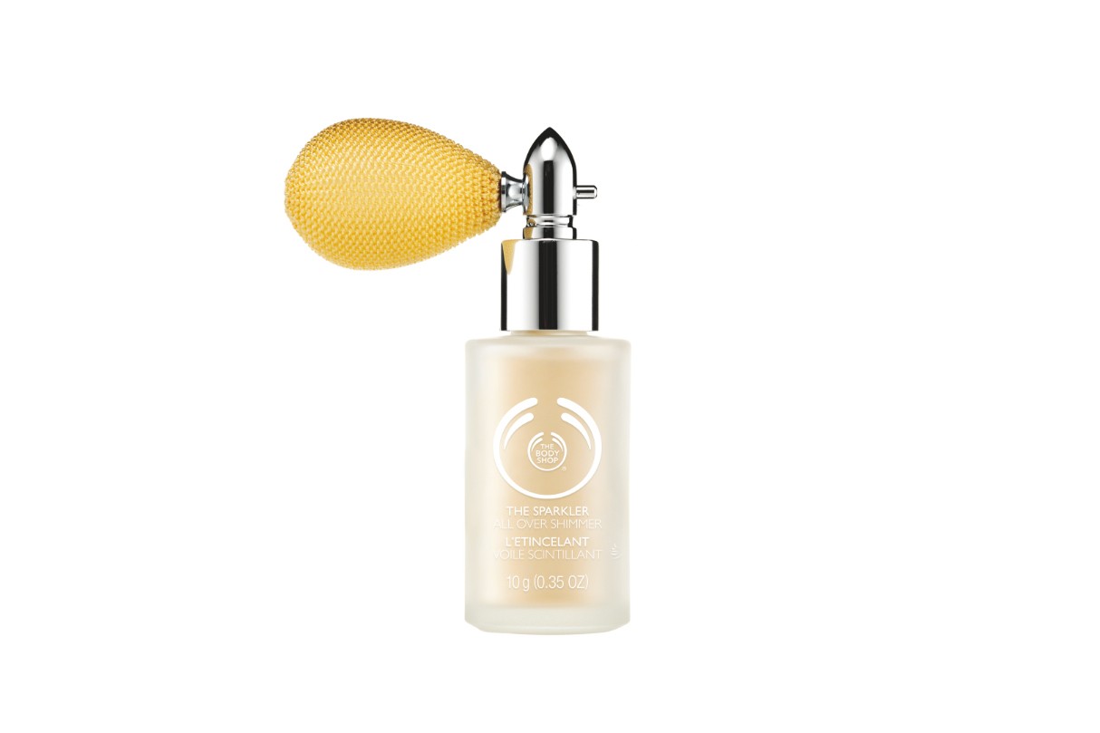 En soirée ou pour les fêtes, faites-vous briller avec ce voile scintillant qui illumine subtilement le visage, le corps et les cheveux. 3 teintes : doré, rose et vert, 20 €, dans les boutiques THE BODY SHOP.