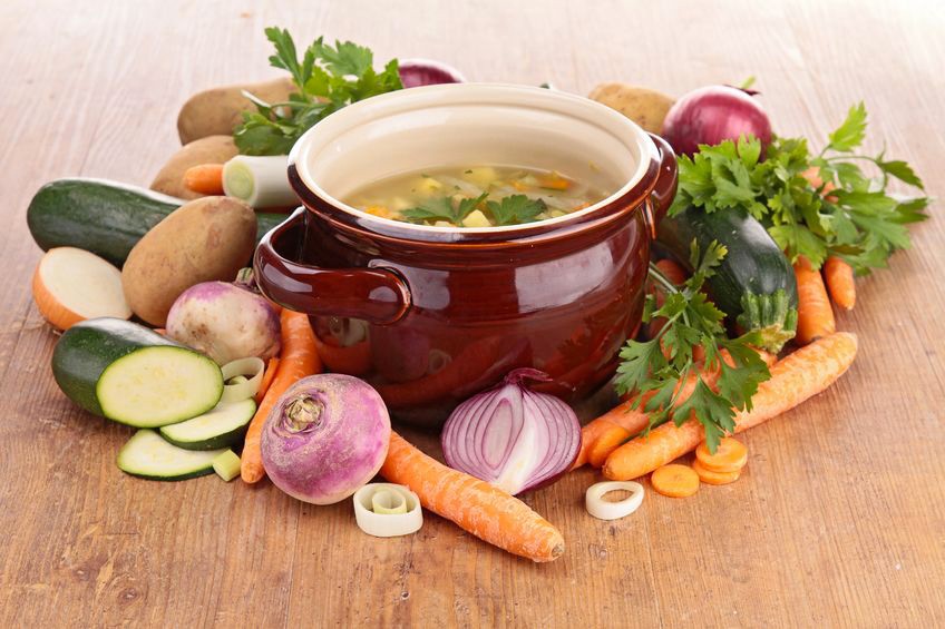 Sous forme de potage, consommé ou bouillon, la soupe offre l’avantage d’être économique en permettant de recycler les restes des repas et aussi de manger des légumes de saison comme le potiron, le céleri, le navet, le poireau ou des légumes oubliés (panais, topinambours,...) que l’on ne cuisinerait pas forcément. Une soupe peut tout à fait servir de plat principal. Agrémentée d'un filet d'huile d'olive, de dés de jambon ou de poulet, de lard, de gruyère râpé, de croûtons, de vermicelles, de légumes secs... elle apporte féculents, lipides, glucides et protéines. Vous faites ainsi un repas complet.