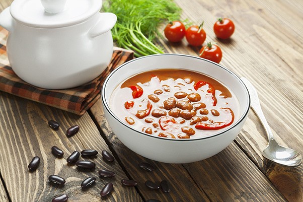 Transférez la moitié de la soupe dans un mixer, couvrez et réduisez en purée. Ajoutez la purée à la soupe et faites cuire l’ensemble jusqu’à ce qu’il soit bien chaud.