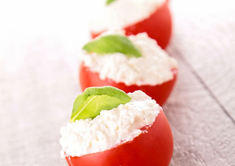 À l'aide d'une petite cuillère, répartissez la tapenade au fond des tomates. Puis, à l'aide d'une poche à pâtisserie munie d'une petite douille cannelée, farcissez les tomates de crème au mascarpone.