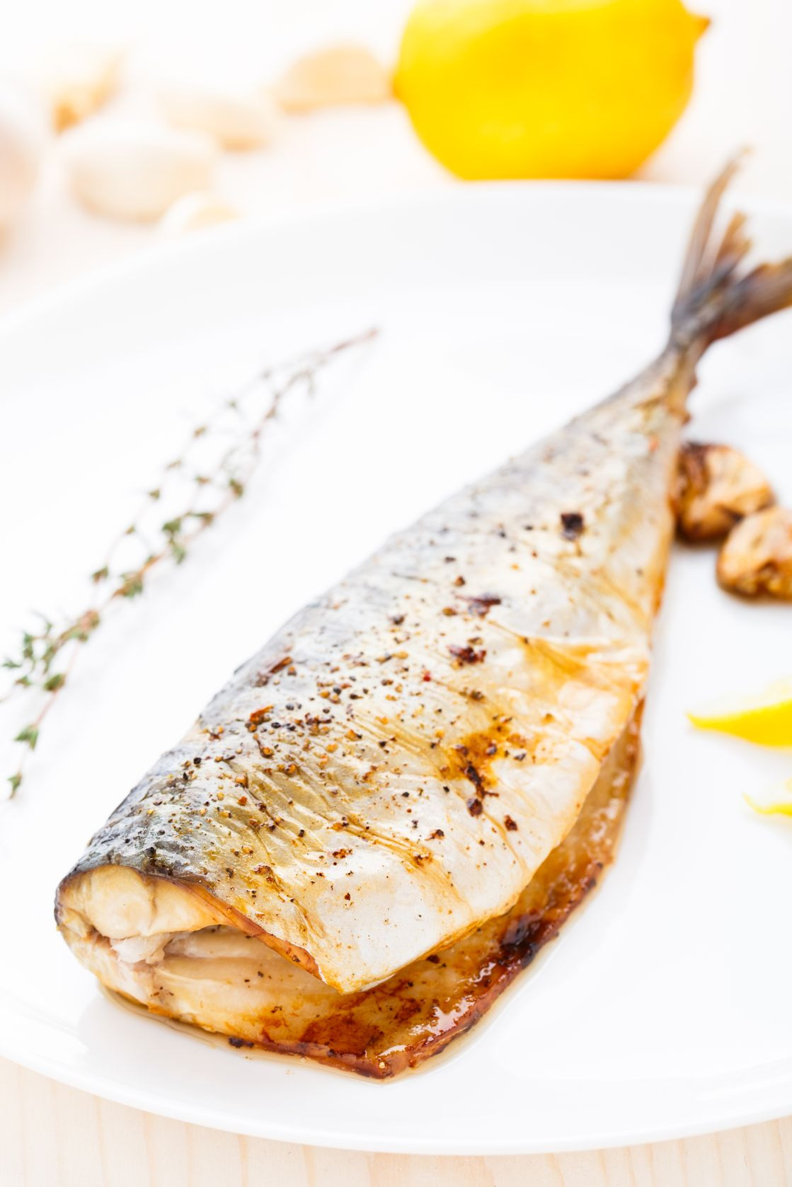 Prenez 2 filets de maquereaux, passez-les sous l'eau et essuyez-les, déposez-les dans un plat et enfournez-les environ 10 minutes (pas plus !) en position gril. Pendant ce temps mélangez quelques brins de persil avec autant de coriandre fraîche, 2 cuillères à soupe d'huile d'olive, le zeste et le jus d'un citron, un peu de sel et du poivre.