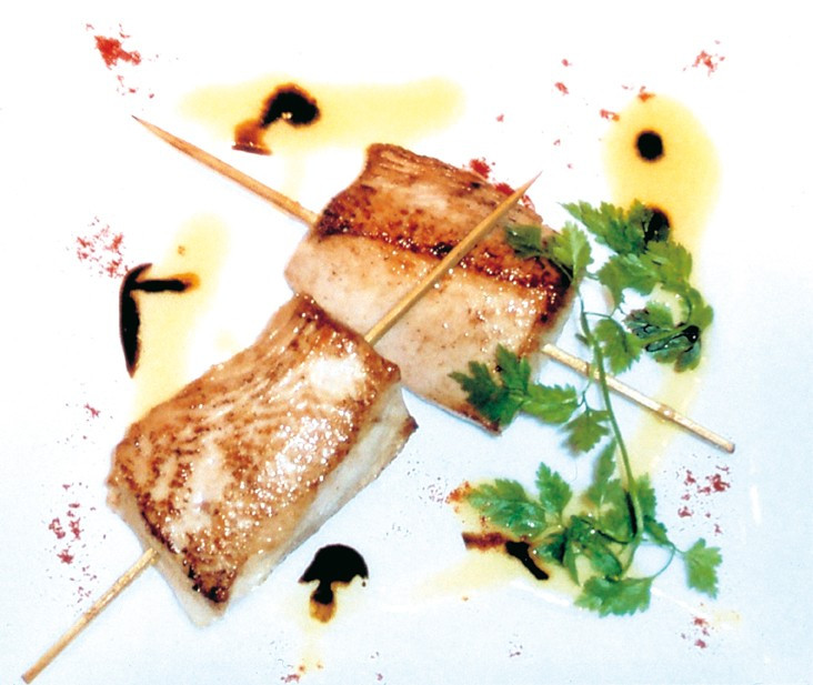 Couper le filet de dinde en " 8 cubes " de 30 g chacun, monter en petites brochettes, assaisonner. Faire revenir celles-ci dans une poêle à feu vif avec de l'huile d'olive, saupoudrer de sucre, faire caraméliser et réserver. Retirer l'excédent d'huile, déglacer avec le jus de citron. Laisser réduire, monter au beurre, napper les brochettes. Ce plat peut être accompagné de polenta crémeuse et agrémenté de dés de figues sèches.