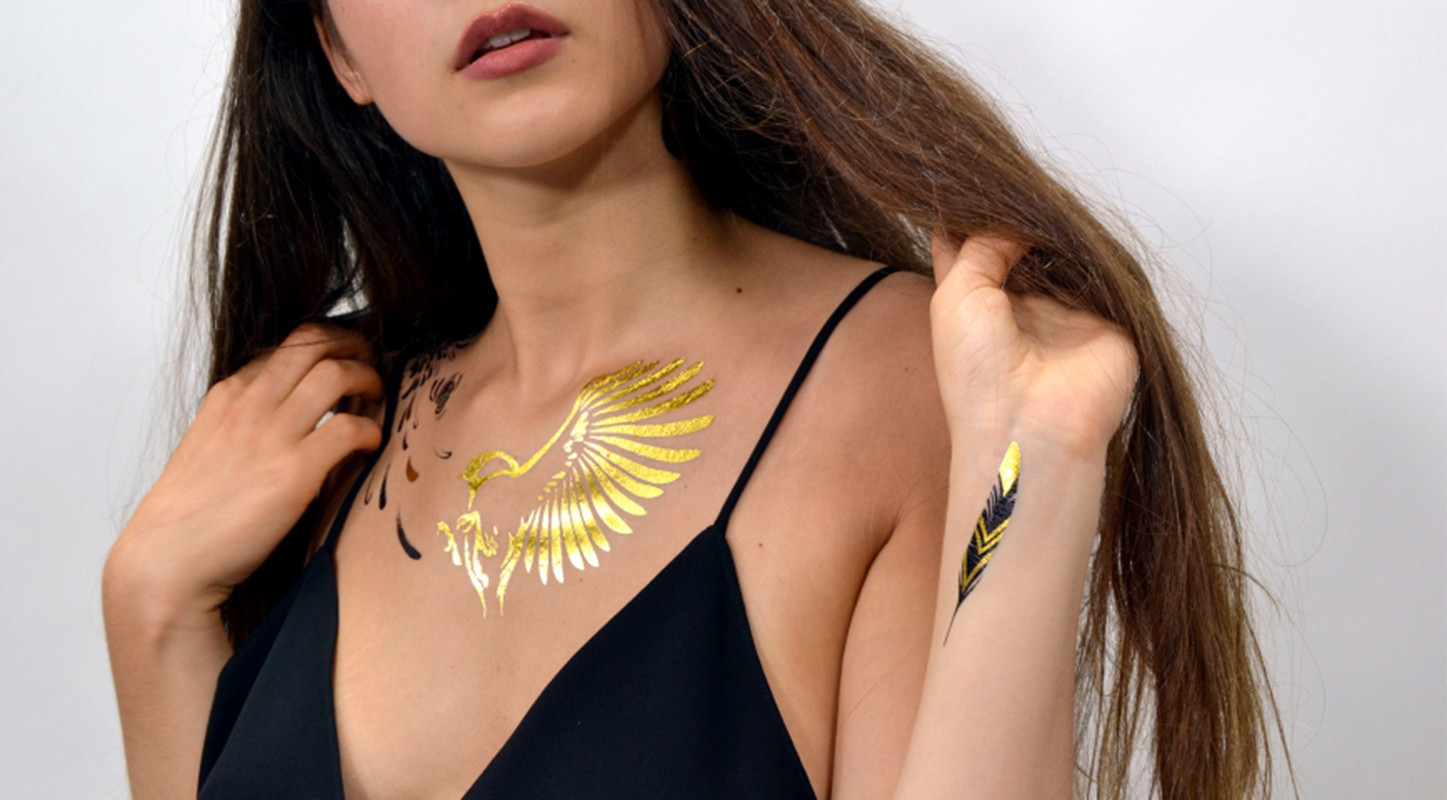 Surtout quand ils sont temporaires. Ils font maintenant partie de l’ADN esthétique de la génération Y. Après les dorés, très prisés en fin d’année, voici les feuilles d’or du plus bel effet sur une peau dorée. Chez Sioou, les créations originales, faciles à poser et à retirer grâce aux lingettes spéciales ont pour nom, entre autres, Precious Owl, Golden Sparrow (19 ,90 €), Mini Origami ou Cassiopée (5,00€). De vrais bijoux ! À découvrir sur le site : www.sioou.com.