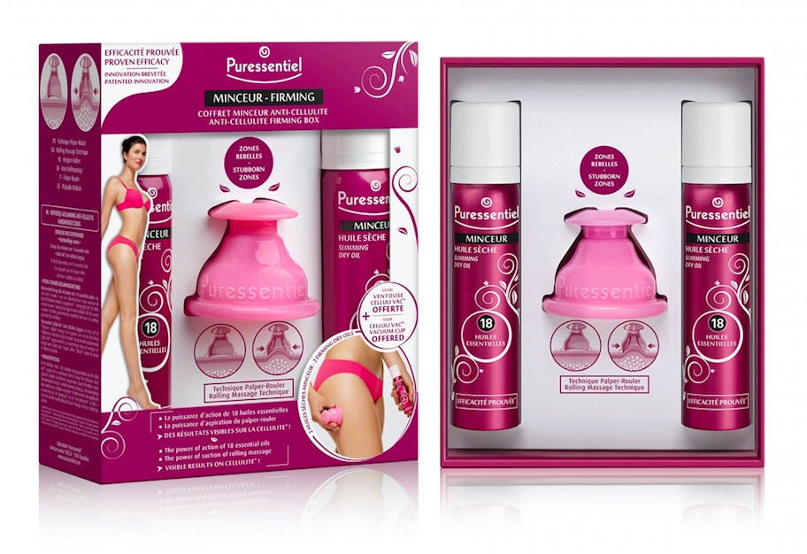 Coffret minceur anti-cellulite, Puressentiel, comprenant : Huiles sèches Minceur 2 x 100ml + 1 Ventouse Celluli VAC, 27, 90 €, en vente en pharmacie et parapharmacie.